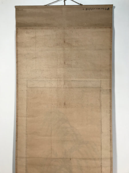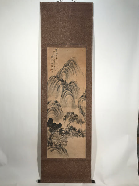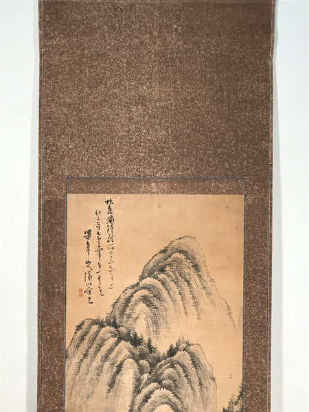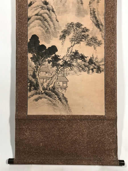 Japanese Hanging Scroll Kakejiku Vtg Man Sitting Mountains Landscape Black KJ193