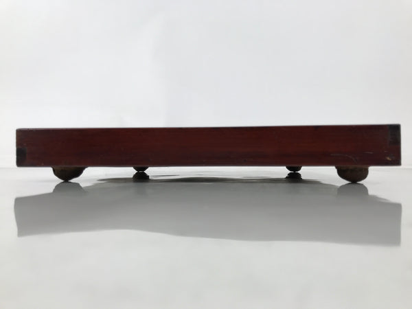Antique Japanese Wood Lacquered Low Table Brown Serving Tray Ozen Kurumizen L499