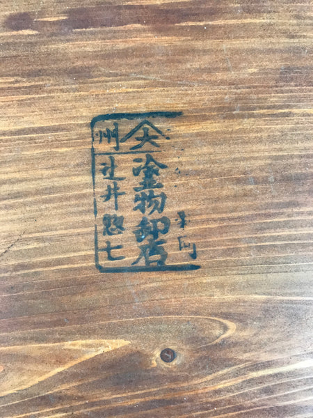 • Characters on the bottom: 塗物卸店 nurimono orositen lacquerware distributor, 辻井惣七 tujii soshichi male name