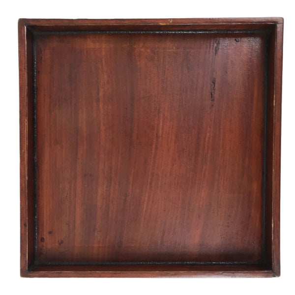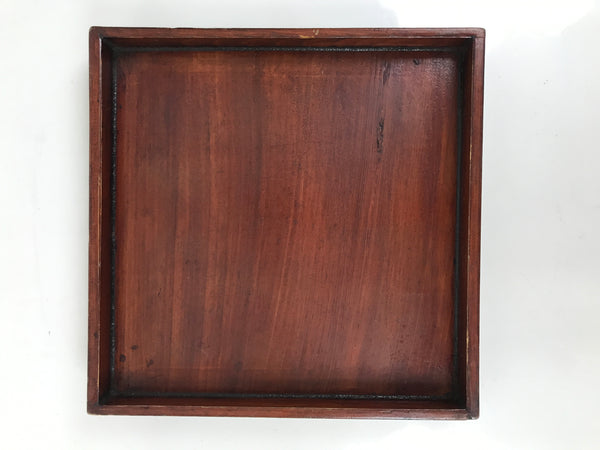 This is an antique Japanese lacquered wooden table or Ozen. This low square table has four walnut legs and is called Kurumi-zen.  This item can be used as a small table or a serving tray. A signature and writings are on the back.