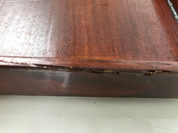 Antique Japanese Wood Lacquered Low Table Brown Serving Tray Ozen Kurumizen L514
