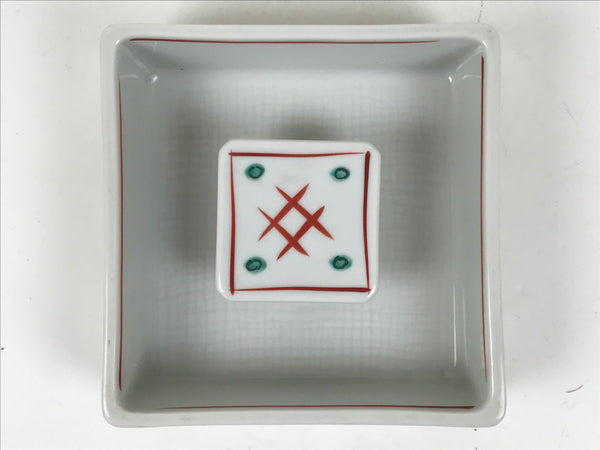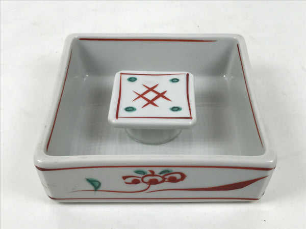 Japanese Tachikichi Porcelain Square Ashtray Vtg Haizara White Red Green Y426