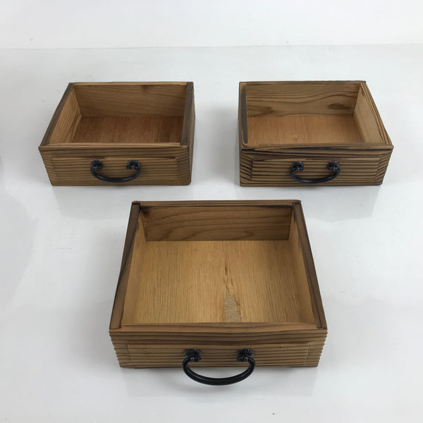 Japanese Rustic Wood Tansu Storage Chest Vtg Haribako Trinket Box 3 Drawer T392