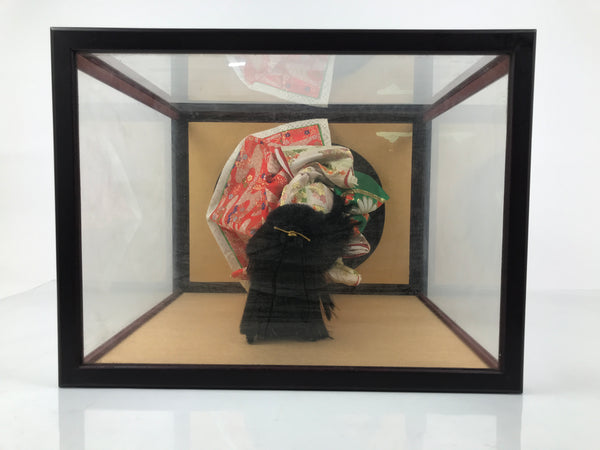 Japanese Glass Case Big Doll Ningyo Princess Vtg Girl's Day Ohinasama Silk ID656