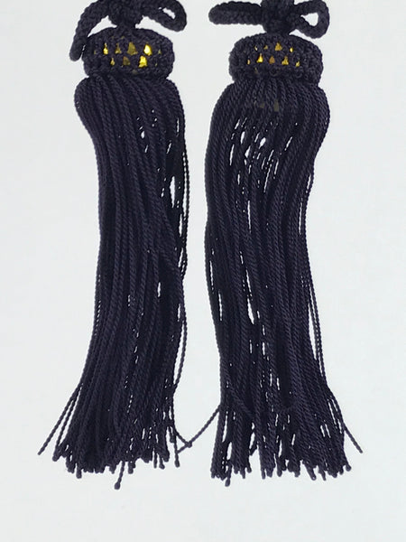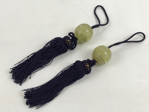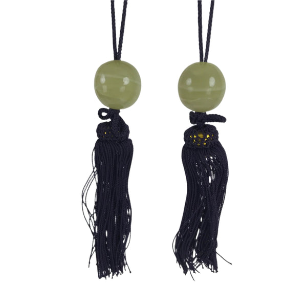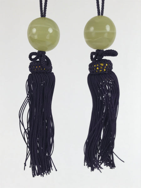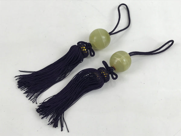 This is a pair of Japanese hanging scroll (kakejiku) weights, or fuchin. Fuchin is a decoration that hangs on both ends of the bottom of a hanging scroll. It's a decoration as well as weighs the scroll down to keep it straight
