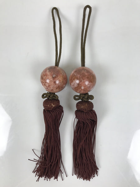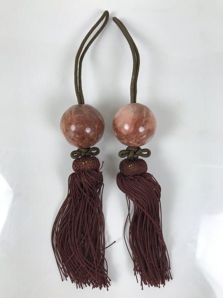 Japanese Pink Stone Hanging Scroll Weights Fuchin Kakejiku Brown Tassel FC364
