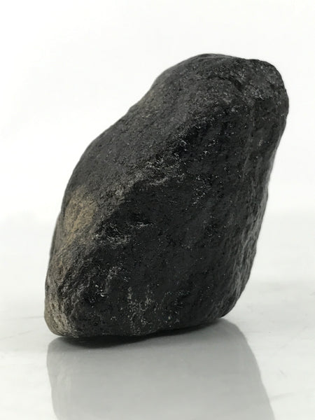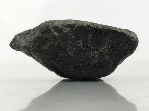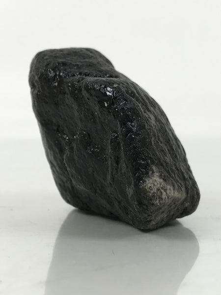 This Japanese viewing stone, also called Suiseki, is black and triangle-shaped. Its flat base makes it easy to display. In traditional Japanese culture, Suiseki are small rocks that are appreciated for their aesthetics and decorative values.