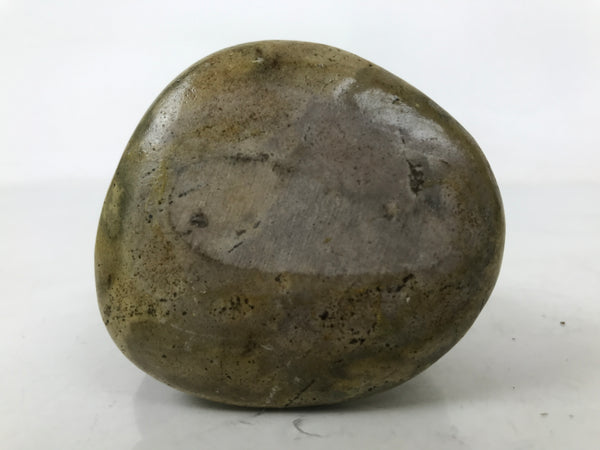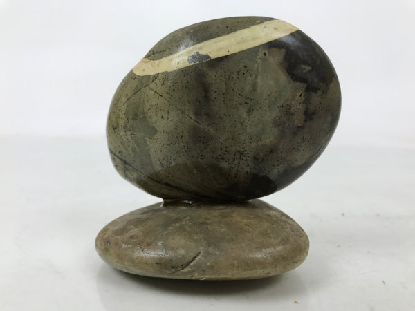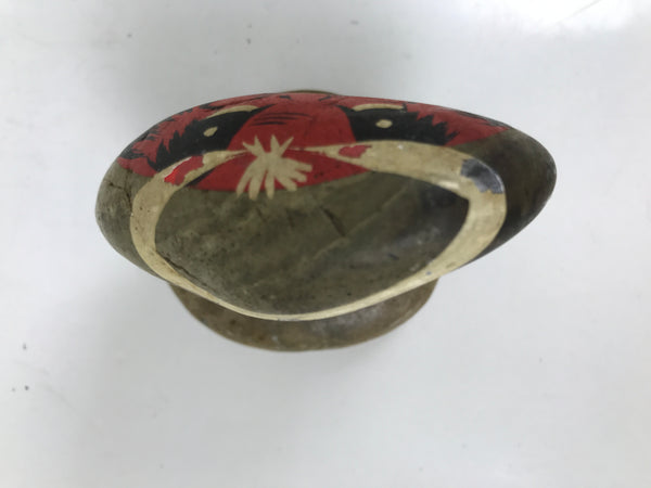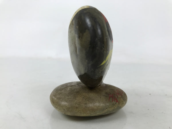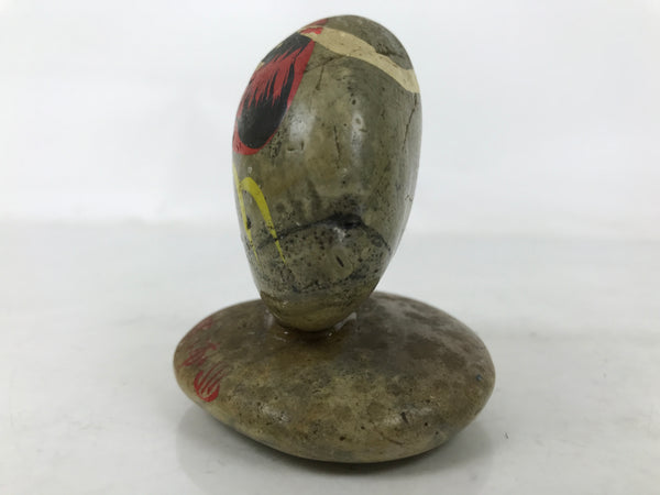 This is a vintage Japanese traditional craft stone kokeshi doll figurine. Round stone represents a Daruma by painting its face . It is fixed on another round flat stone. There is an inscription on the stand. This seems to be a souvenir of Katsuura hot springs in Wakayama.