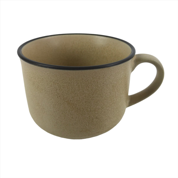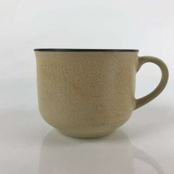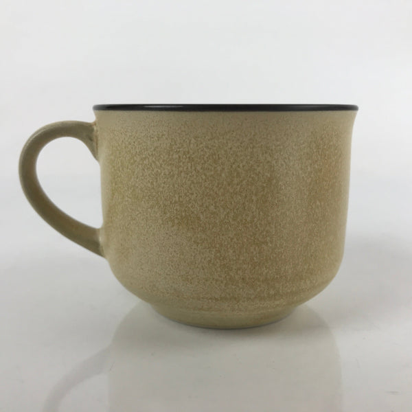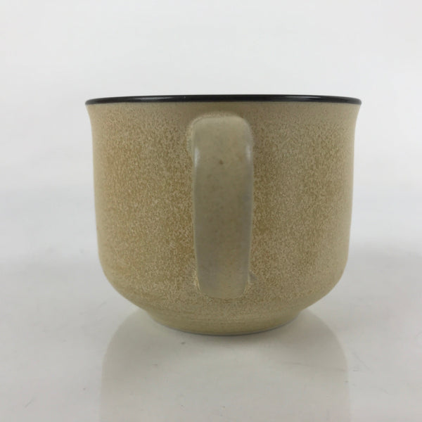 This is a vintage Japanese ceramic teacup or small mug cup. With a matte yellow beige speckled glaze and a brown rim, this little cup can be used for loose leaf tea (sencha) or coffee. It is also the perfect size for small desserts.