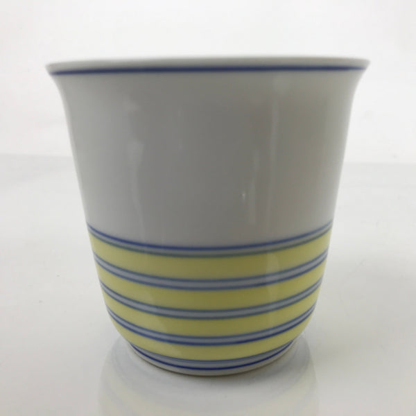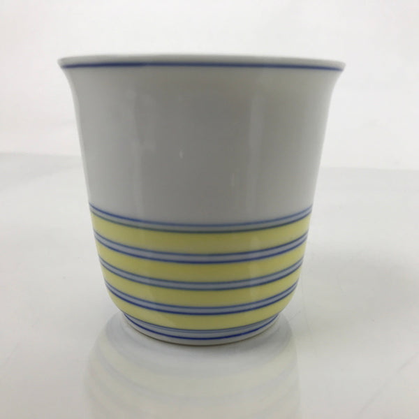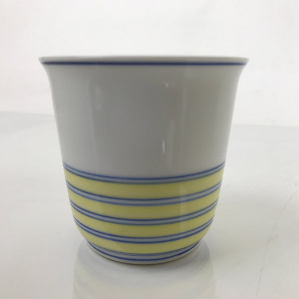 Japanese Porcelain Tachikichi Teacup Vtg White Yellow Blue Lines Yunomi TC448