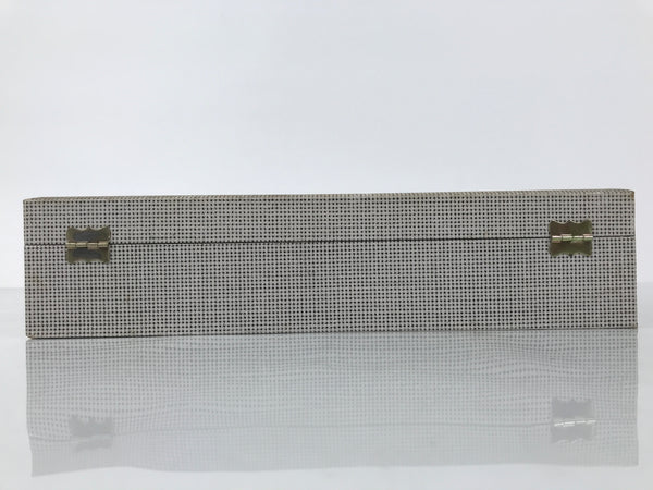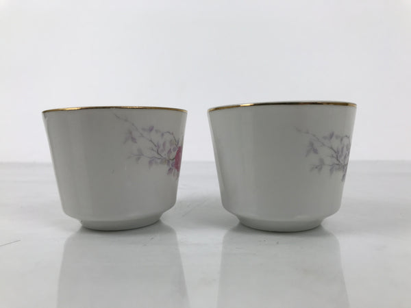 Japanese Tea Set Porcelain Metal White Floral Cup Saucer Spoon Wooden Box JK927