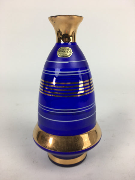 Czechoslovakia Flower Vase Vtg Kabin Flower Arrangement Blue Glass FV958