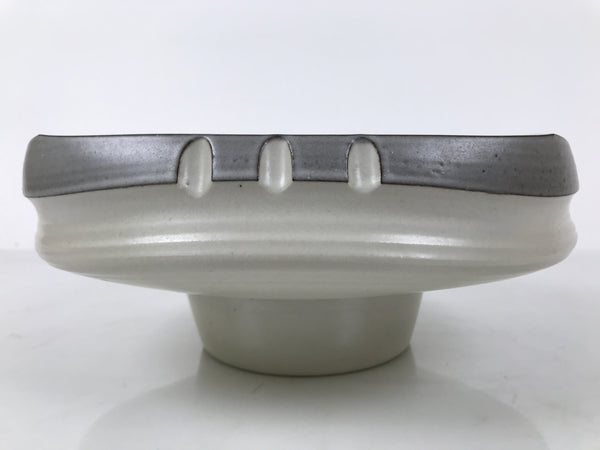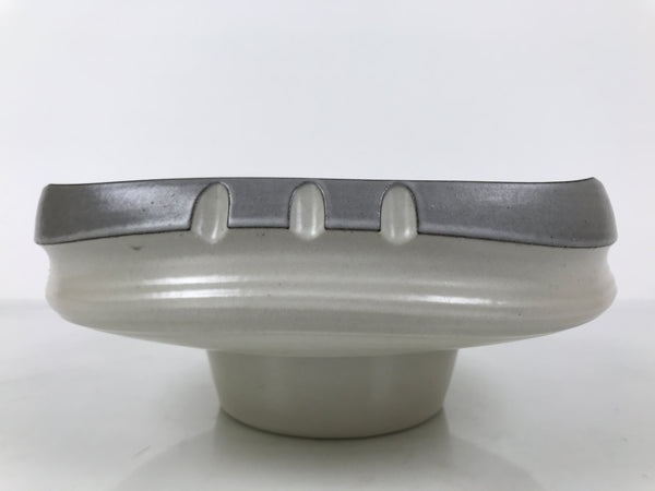 Japanese Ceramic Suiban Flower Vase Pottery Ikebana Arrangement Gray White Y521