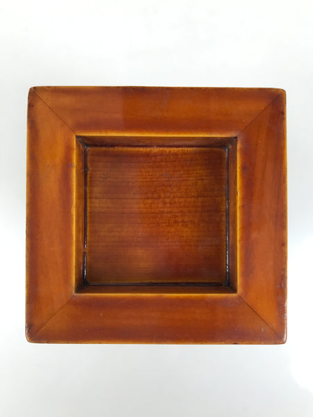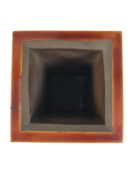 This is a vintage Japanese lacquered wooden flower vase, or kabin. It is lightweight and has a striking caramel brown color in true Hida Shunkei style. The vase is made of wood and has a thin copper metal insert to keep the inside of the vase safe from moisture. It can be used for all types of flower arrangements both ikebana and casual bouquets.