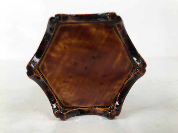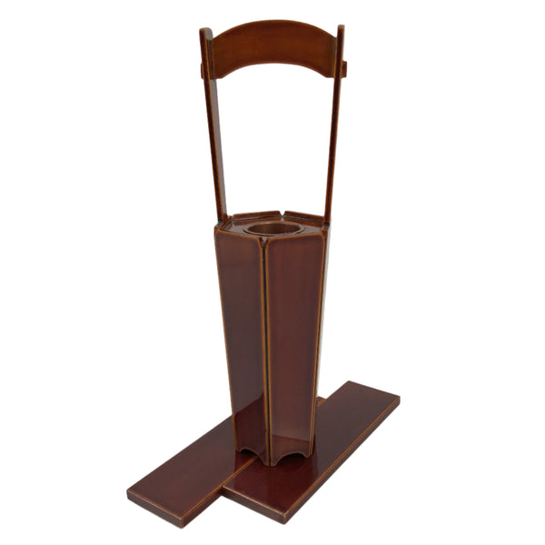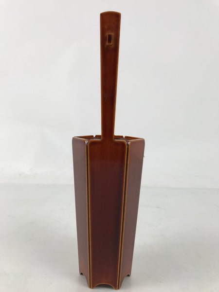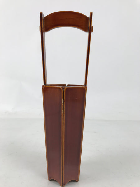 This is a vintage Japanese lacquered wooden flower vase, or kabin. It is lightweight and has a striking caramel brown color in true Hida Shunkei style. The vase is made of wood and has a thin copper metal insert to keep the inside of the vase safe from moisture. It contains two rectangular boards as a vase stand, which can be arranged as you like.  It can be used for all types of flower arrangements both ikebana and casual bouquets.