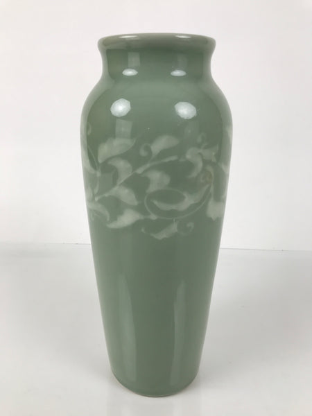 Japanese Porcelain Celadon Flower Vase Vtg Ikebana Kabin Green Leaf Seiji FK213