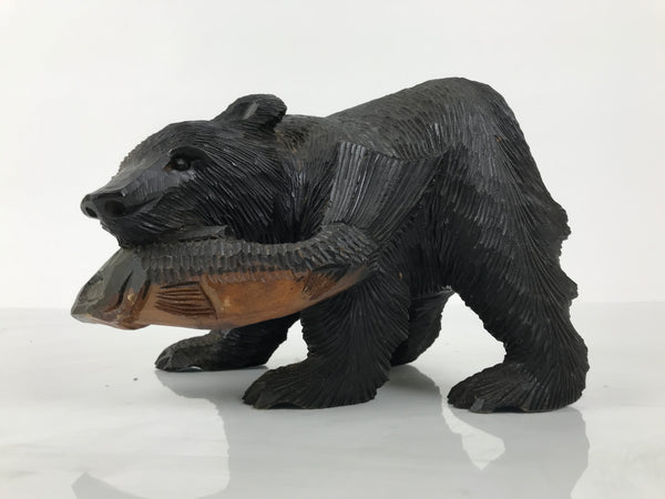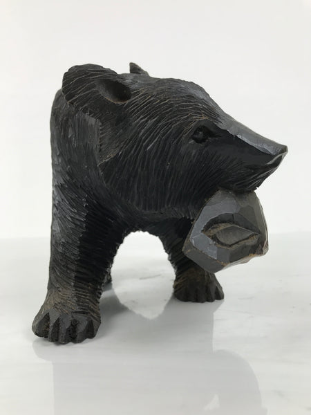 Famously from Hokkaido and northern Japan, this intricately hand-carved bear statue with a fish in its maw is a traditional Ainu folk handicraft.