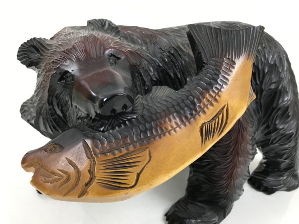 Famously from Hokkaido and northern Japan, this intricately hand-carved bear statue with a fish in its maw is a traditional Ainu folk handicraft.