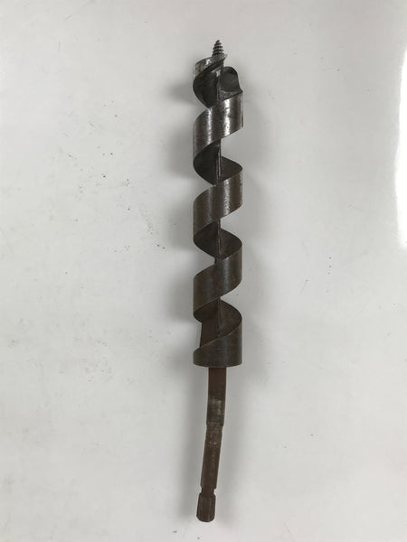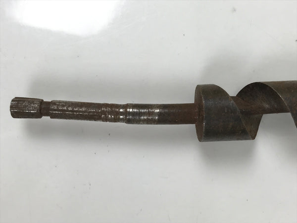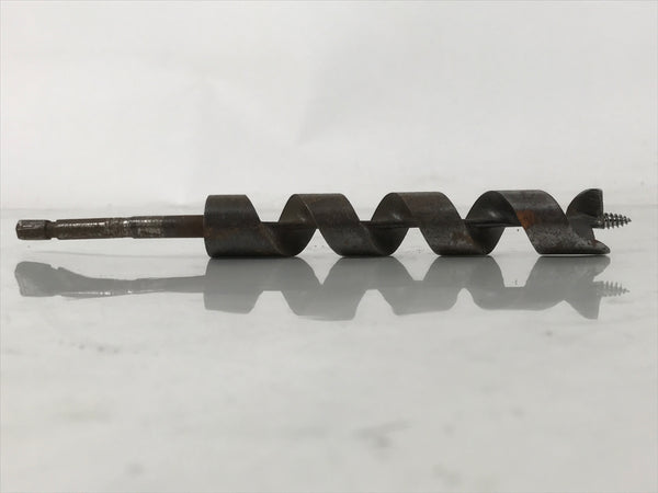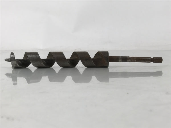 This is a vintage Japanese drill bit for woodworking. It is used to open holes in a wooden plate. It has a screw-like tip, making it easier to open a hole, and a hexagon shaft. It doesn't include a handle, which is needed for using this drill bit.