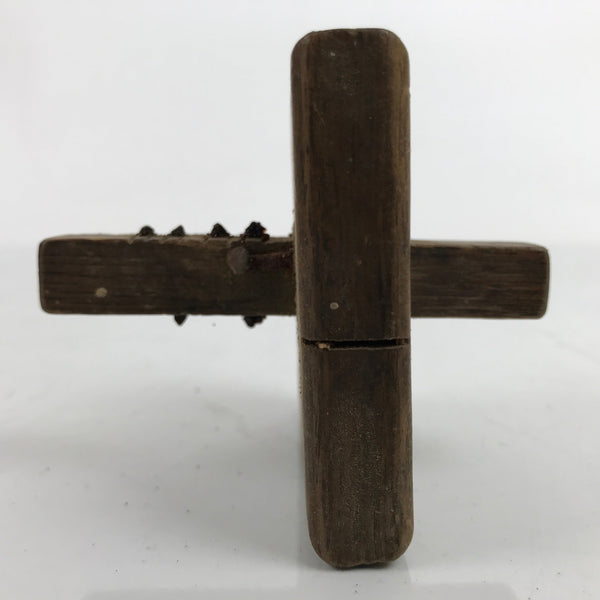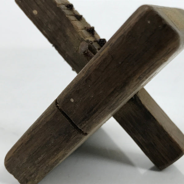 This is a vintage Japanese marking gauge, suji kebiki haritsuki for woodworking. It has nails on three sides to scratch the wood surface. The nails are not the same distance from the base.