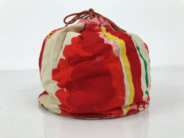 Japanese Kimono Silk Purse Kinchaku-Bukuro Bag Vtg Pouch Floral Red Pink KB99