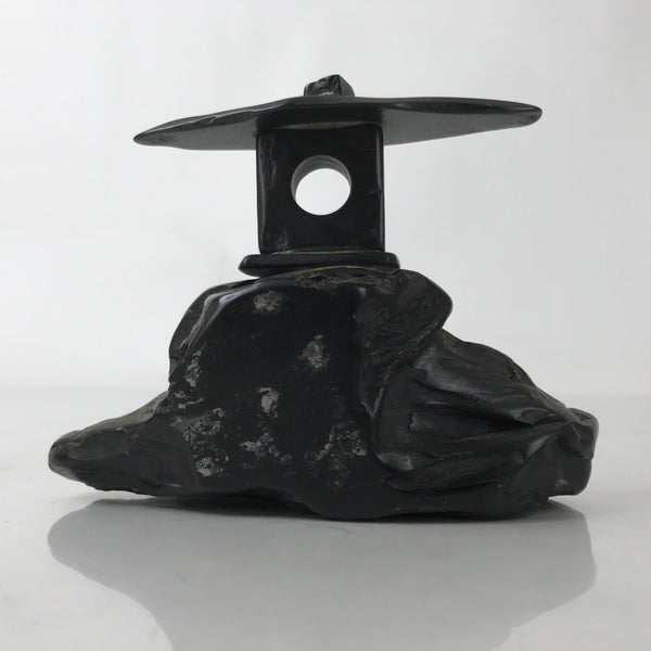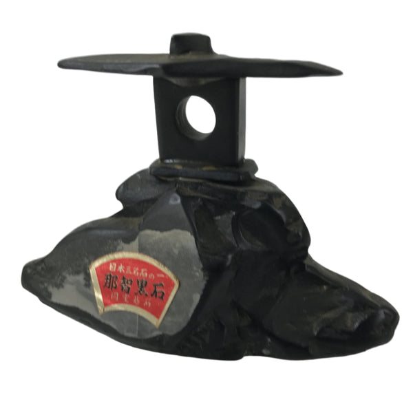 This is a vintage Japanese stone paperweight. It is made from Nachi Guroishi black stone, a famous stone in Japan from the Mie prefecture. The top part is shaped like a lantern. It can be used as a paperweight for any kind of paper or as a simple decoration.