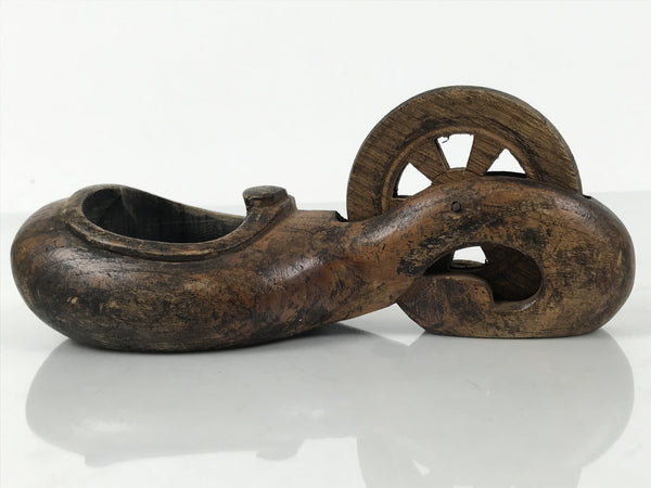 This is a vintage Japanese carpentry tool used for marking straight lines for woodworking. It has an ink pot and a spinning wheel.