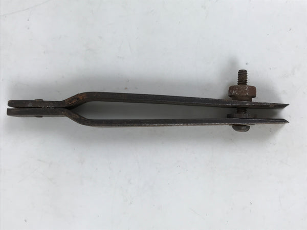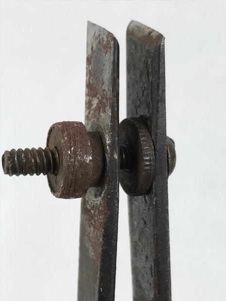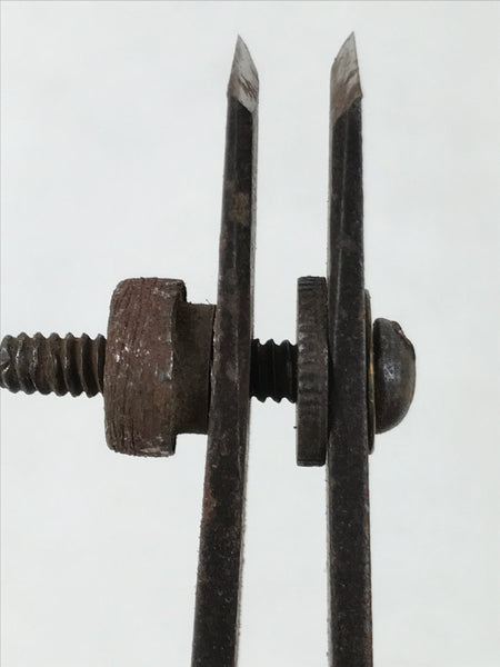 This is a vintage Japanese marking scratching tool, shirohiki, for woodworking. It has two blades and is used to scratch accurate lines on wood for manufacturing. It is called Nicho-shirohiki, which means two-blade shirohiki. The space between the blades is adjustable with the bolt.