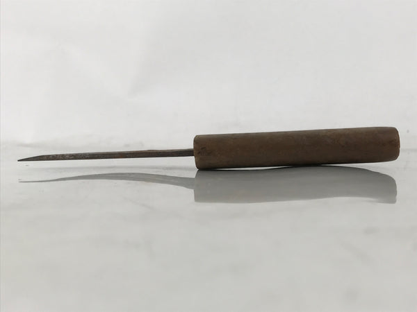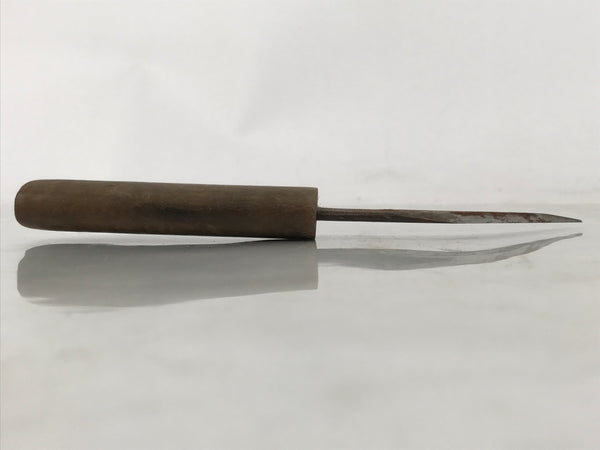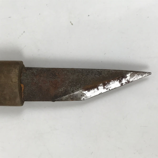 This vintage Japanese woodworking craft knife has a steel blade and a wooden handle. This knife is single-edged and called Kiridashi-kogatana.