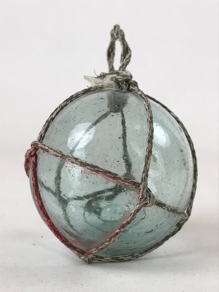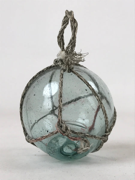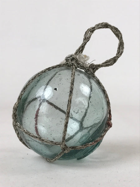 Japanese Glass Fishing Float Ukidama Buoy Ball Vtg Bindama Rope Small Blue GF18