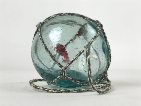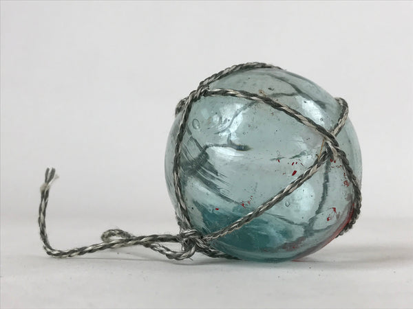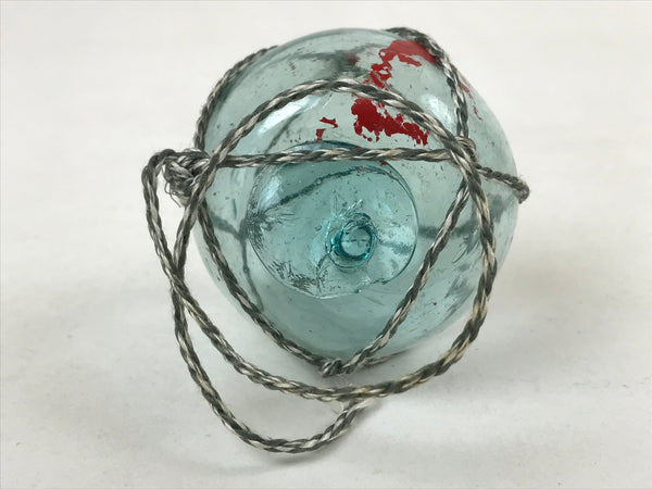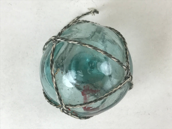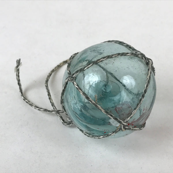 Japanese Glass Fishing Float Ukidama Buoy Ball Vtg Bindama Rope Small Blue GF29
