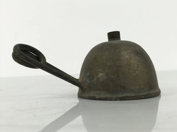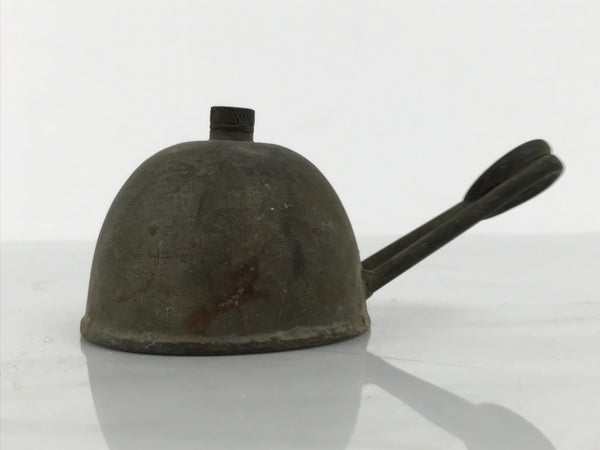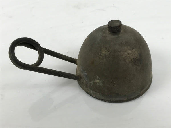 This is a vintage Japanese old-fashioned metal coil burner. It was a popular tool in the military and for camping/trekking for its compactness and ease of carrying. It is also a tool that can be used in scientific laboratories similar to a Bunsen burner, though without much flame control. It consists of a reservoir with a screw-top opening and a coil jutting from the side. **This item has not been tested**