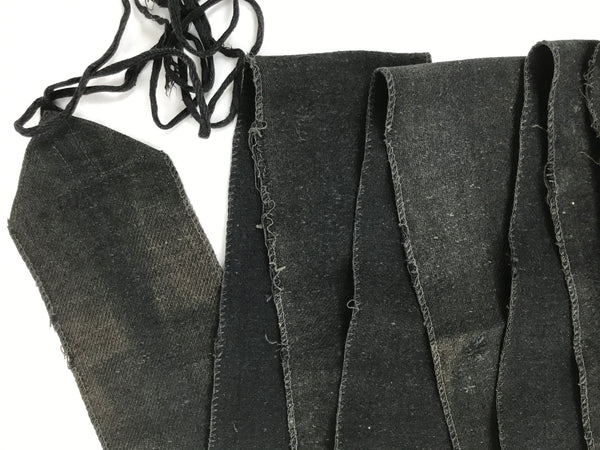 This is a pair of vintage Japanese WWII military uniform puttees, also called makikyahan. They are long stretches of fabric with ties on one end used to bind the legs from the ankle to the knee to protect the legs. These were a very common accessory for military uniforms worldwide during the First and Second World Wars.