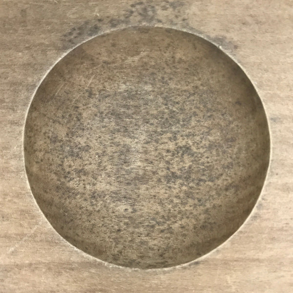 This two-panel kashigata mold is carved with the design of a rounded dome shape with a tapered bottom. This shape is often used for apple designs, but can also be used for mikan orange. This mold can be used to make sweets or as an eye-catching decorative item.