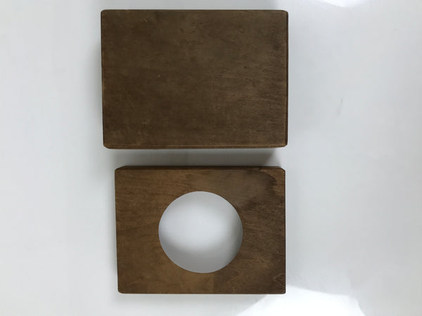 This two-panel kashigata mold is carved with the design of the top section of an apple. This mold can be used to make sweets or as an eye-catching decorative item.