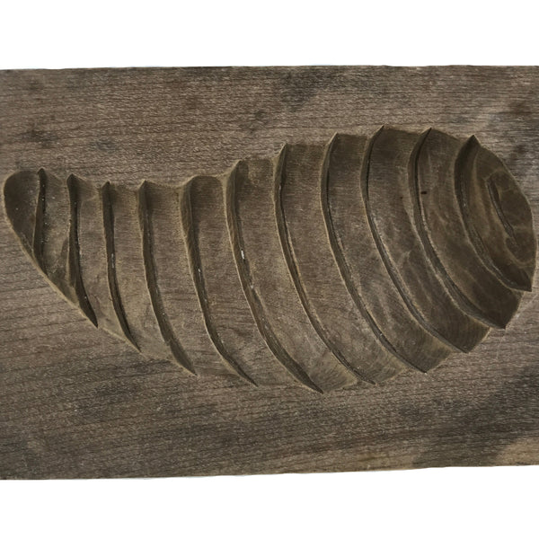 This single-panel kashigata mold is carved with the design of a lengthwise cross-section cut of a bamboo shoot (takenoko). This mold can be used to make sweets or as an eye-catching decorative item.