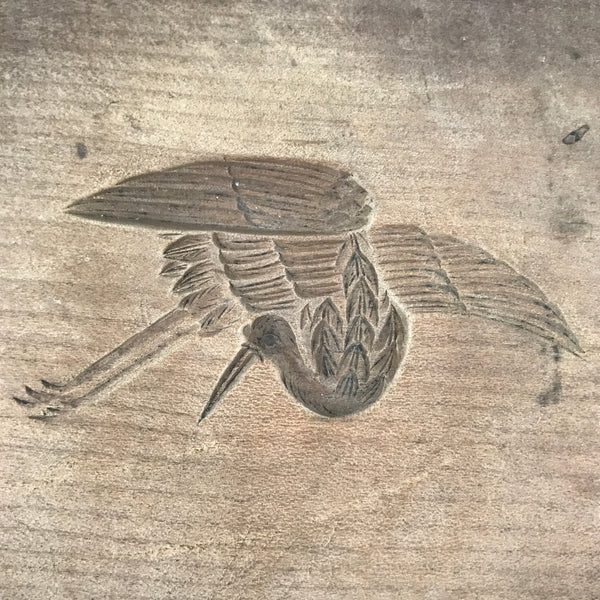 This single-panel kashigata mold is carved with the design of a Japanese crane (tsuru). They are said to be symbols of longevity and bringers of good fortune. This mold can be used to make sweets or as an eye-catching decorative item.