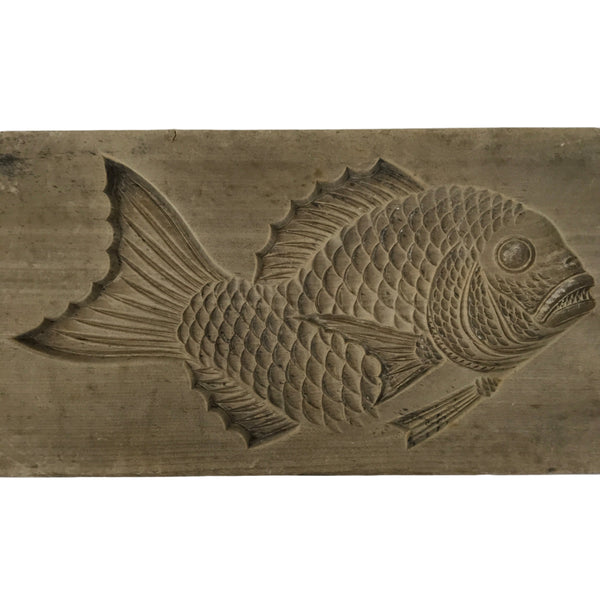 This two-panel kashigata mold is carved with the design of a sea bream fish (tai or madai). Served often in celebratory meals, this vibrant red fish symbolizes good luck. This mold can be used to make sweets or as an eye-catching decorative item.