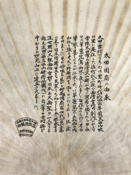 • Kanji on back: A short description of the history of sesson uchiwa