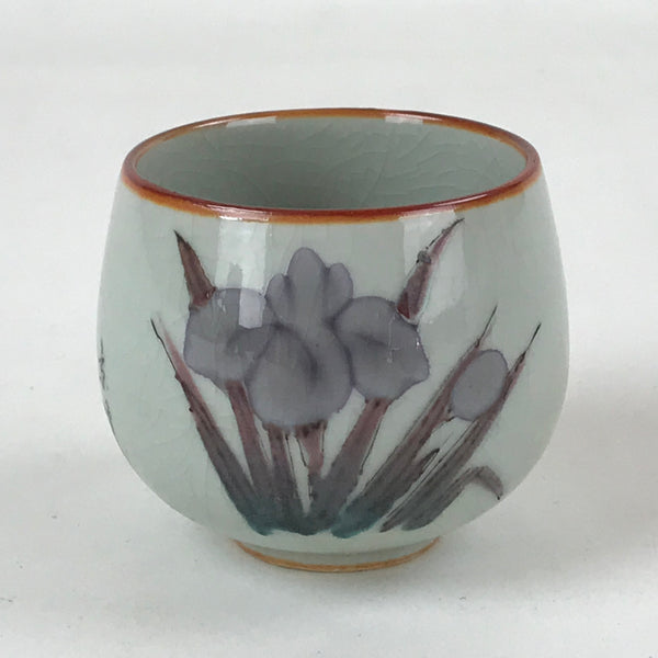 Japanese Ceramic Teacup Vtg Iris Flower Crackle Glaze White Yunomi Sencha TC401