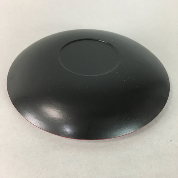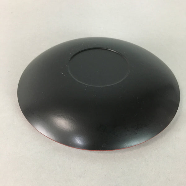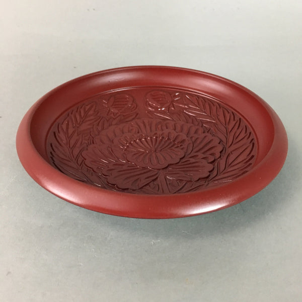 Japanese Wood Lacquer Plate Replica Vtg Floral Carving Round Red Black QT57