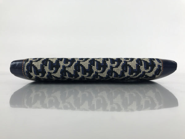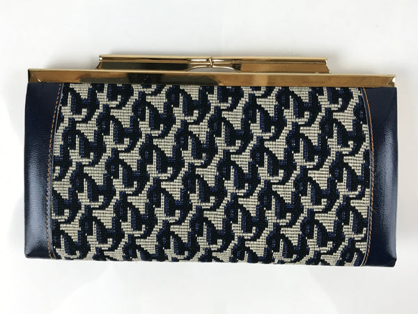 Japanese Pleather Woven Fabric Clutch Wallet Vtg Gamaguchi Clasp Blue Beige KB84