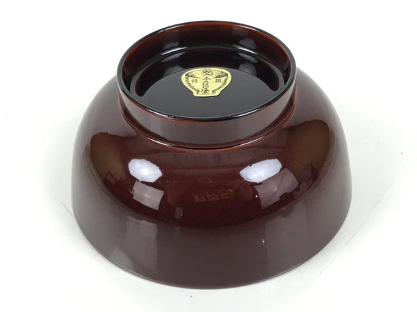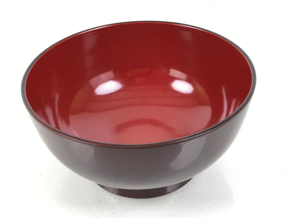 This is a vintage Japanese Wajima wooden lacquered rice bowl. It is a classic red on the inside with the rest a rich brown color, made with natural lacquer. It is a beautifully handcrafted addition to any traditional Japanese dinnerware set.