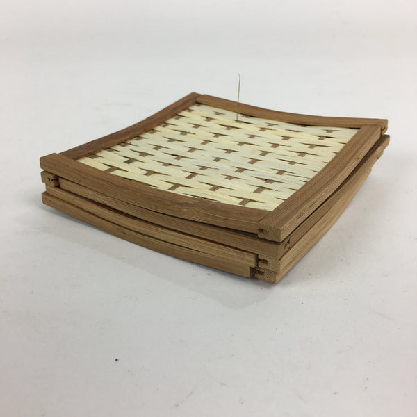Japanese Bamboo Craft Drink Saucer 4pc Set Vtg Chataku Coaster Brown UR537