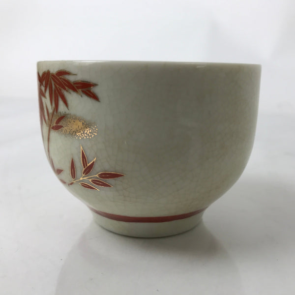 Japanese Ceramic Kutani Ware Teacup Vtg Pottery Yunomi Crackle Bamboo Red TC553