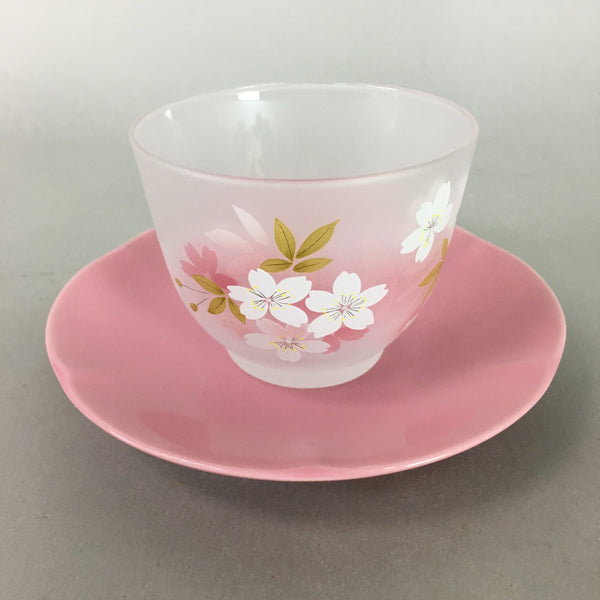 Japanese Glass Teacup Saucer Set Vtg Sakura Yunomi Coaster Cold Tea Sencha QT77