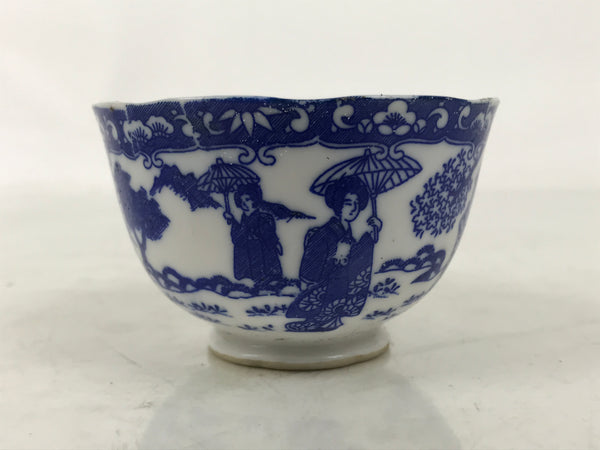 Japanese Porcelain Western-style Teacup Vtg Yunomi Sometsuke Geisha Blue TC608