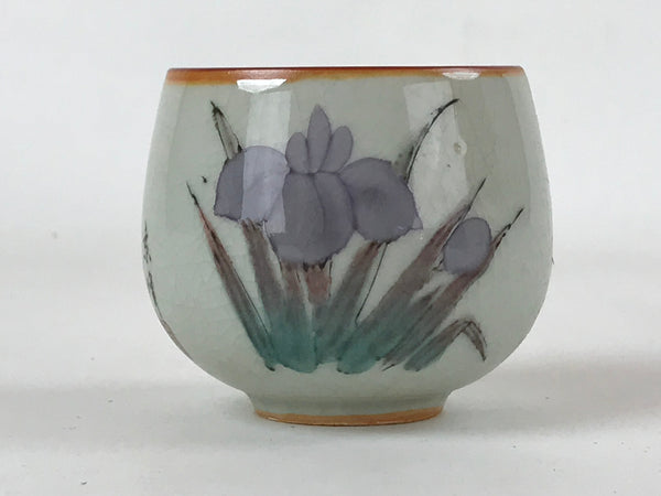 Japanese Ceramic Teacup Vtg Iris Flower Crackle Glaze White Yunomi Sencha TC405