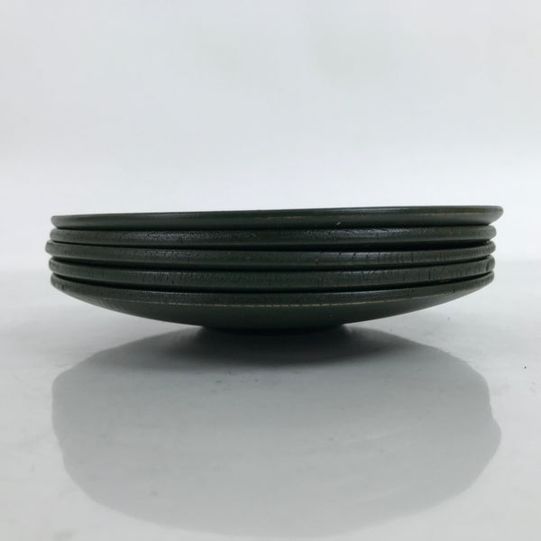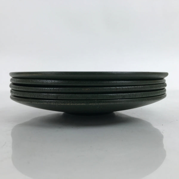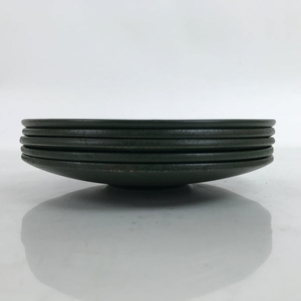 Japanese Brushed Lacquer Wooden Drink Saucer Vtg Chataku Coaster 5pc Green L331