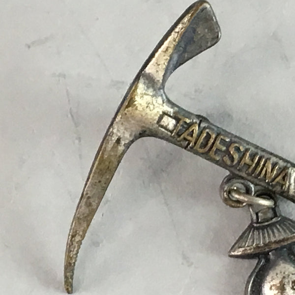 Japanese Lapel Pin Vtg Badge Metal Brooch Accessory Pickaxe Lamp J710